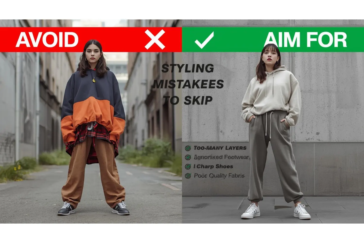 Some mistakes can ruin the look. Oversized bottoms break balance. Too many layers create bulk. Loud color mixing looks messy. Therefore, simplicity is important.